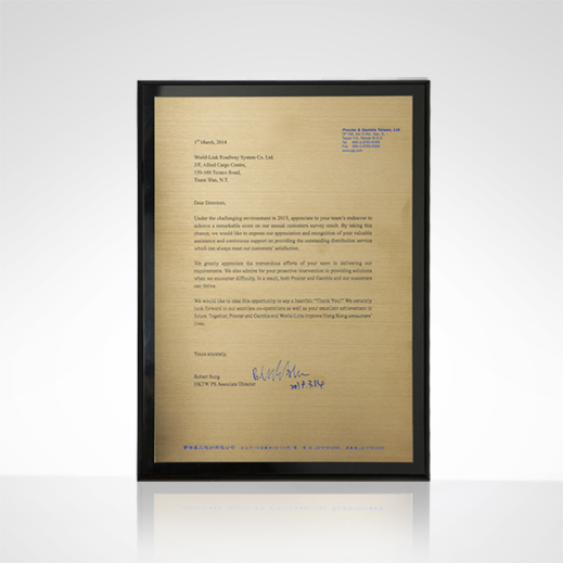 環宇是我們親密的物流伙伴,他們不只為我們提供貼身物流方案,還積極助我們發展市場及將公司推廣給不同客戶群,有助我們業務的發展,衷心感謝環宇對本公司多年的協助及支持。